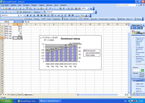 Вот как теперь выглядит рабочий лист с прогнозом на основе линейной