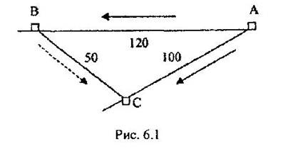 Рассчитать ставку платы за досрочное отправление трёх полувагонов с металлоконструкциями при следующих исходных данных: для обеспечения срочной погрузки на станцию С поданы два порожних полувагона со станции В (вместо нормального направления подачи порожняка – со станции А), один порожний полувагон уже находился на станции С (рис. 6.1). Трудозатраты по организации досрочной перевозки – табл. 6.1, затраты на начально-конечные операции