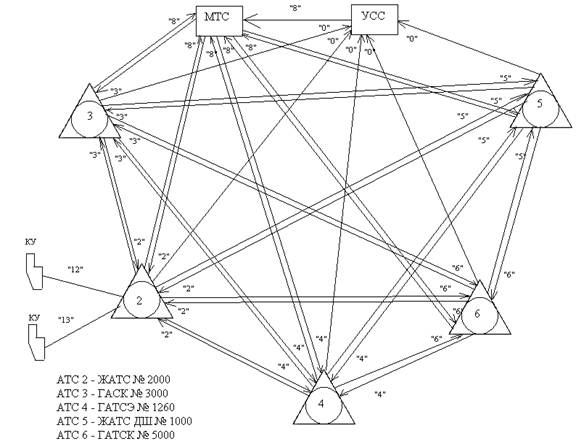 Необходимо дать характеристику телефонной сети населенного пункта А: емкость городской сети, емкость железнодорожной сети, связь проектируемой станции с существующими, АМТС, узлом спецсвязи и т.д. Выполнить схему построения телефонной сети по принципу «Каждая с каждой» и иному, предусматриваемому проектантом.