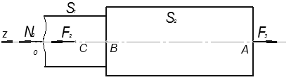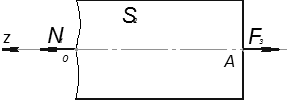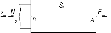 Участок 1 (АВ). Рассечём, мысленно, стержень в местах, где необходимо определить значения внутренних усилий и внутренних напряжений. Одну из частей (левую) отбросим (рис. 1.2), а для оставшейся составим уравнение равновесия