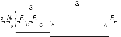 Дано: F1 =10 кН; F2 =12 кН; F3 =30 кН; S1 = 200 мм2; S2 = 300 мм2;