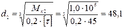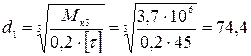 2) определить диаметры d1 и d2 вала из расчета на прочность, при заданном значении