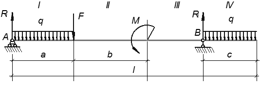 Для заданной схемы балки (рис. 4.1) требуется написать выражения внутренних поперечных сил Q и изгибающих моментов Ми для каждого участка в общем виде, построить эпюры Q и Ми, найти