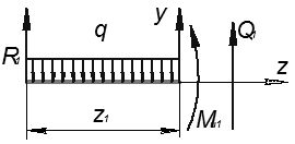 2. Найдем значения изгибающих моментов Ми и поперечных сил Q на концах участков нагружения методом сечения.