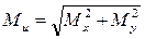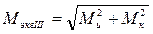 В обеих формулах Мк и Ми - соответственно крутящий и суммарный изгибающий моменты в рассматриваемом сечении вала. Числовое значение суммарного изгибающего момента равно геометрической сумме изгибающих моментов, возникающих в данном сечении от вертикально и горизонтально действующих внешних сил, т.е.:
