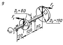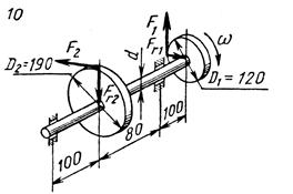 3. Вычислить нагрузки F1, Fr1, F2, Fr2, приложенные к валу.