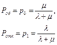 Эти величины можно интерпретировать как вероятности того, что заявка будет обслужена либо получит отказ: