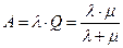 Абсолютная пропускная способность системы, то есть число обслуженных заявок в единицу времени, - это произведение интенсивности потока заявок на долю всех обслуженных заявок: