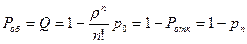 Вероятность отказа в обслуживании заявки определим как вероятность того, что при поступлении заявки в систему все п ее каналов будут заняты: