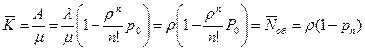 Так как каждый канал обслуживает μ заявок в единицу времени, то среднее число занятых каналов можно вычислить: