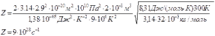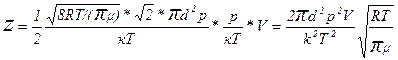 Число соударений Z, происходящих между всеми молекулами за 1 с, равно