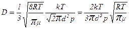 Коэффициент внутреннего трения газа может быть выражен через коэффициент диффузии (см. формулы (1) и (5)):