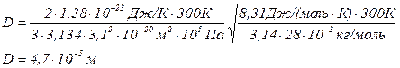 Задача 10. Определить коэффициенты диффузии и внутреннего трения азота, находящегося при температуре Т=300 К и давлении 105 Па.