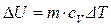 U можно определить, зная массу газа m, удельную теплоемкость при постоянном объеме сv и изменение температуры
