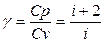 - показатель степени адиабаты, равный отношению теплоемкостей: