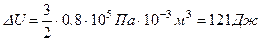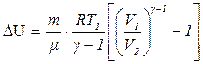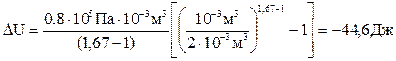 Находим изменение внутренней энергии при адиабатном процессе для аргона, учитывая формулы (8) и (9):