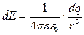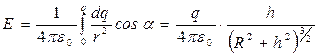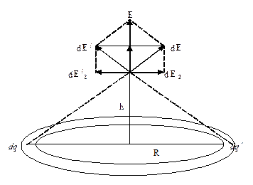Напряженность электрического поля dE, создаваемого в точке А на оси кольца зарядом dq, равна: