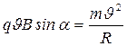 -скорость электрона, В- магнитная индукция, m- масса электрона, R-радиус кривизны траектории, α - угол между векторами