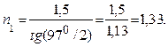 , где n2,1 - относительный показатель преломления второй среды /стекла/ относительно первой /жидкости/, т.е.