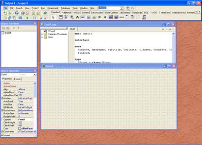 Рис. 8. Основные составляющие среды программирования Delphi 7.
