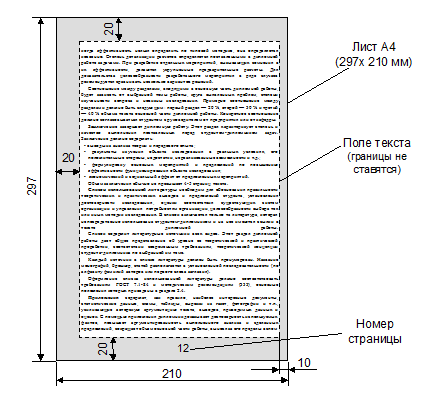 Текст должен быть ограничен установленными полями (рисунок 2.1):