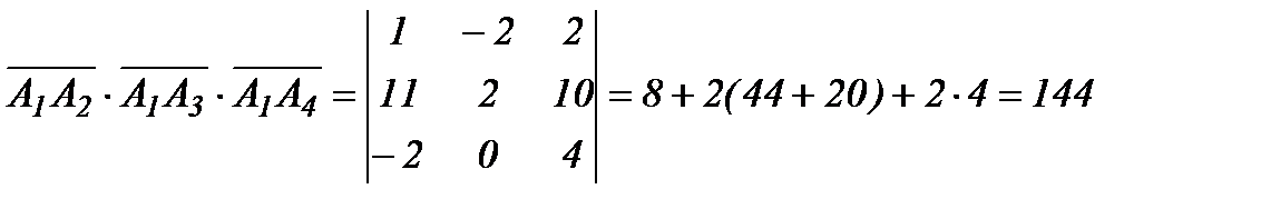 5) Объем пирамиды V в шесть раз меньше объема параллелепипеда V1, построенного на трех некомпланарных векторах, и равен абсолютной величине их смешанного произведения. Вычислим смешанное произведение
