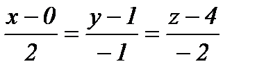 где х0, у0, z0 – координаты точки, через которую проходит прямая (8), а m, n, p – направляющие коэффициенты этой прямой. По условию прямая проходит через точку А4( 0; 1; 4) и перпендикулярные грани А!А2А3 для которой
