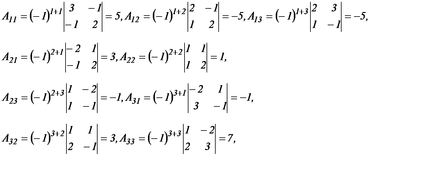 где Aij (i = 1,2,3; j = 1,2,3) – алгебраическое дополнение элемента aij в определителе матрицы А и