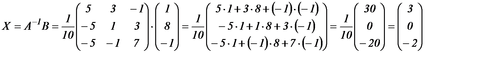 По формуле (2) находим решение данной системы уравнений в матричной форме:
