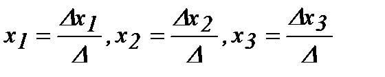 Формулы (3) называются формулами Крамера, где Δхi получается заменой i-го столбца в главном определителе Δ столбцом свободных членов.