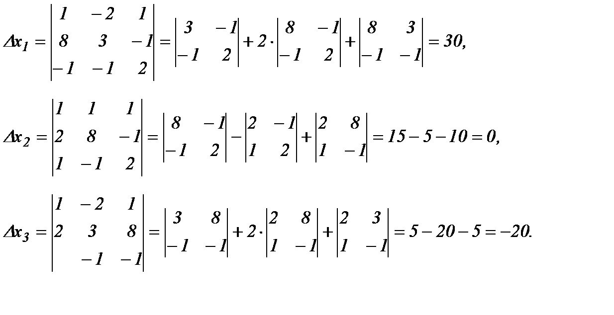 Вычислим вспомогательные определители: