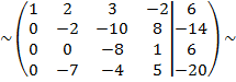 умножим вторую строку на 7 и сложим с четвертой строкой