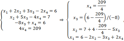 т.е. обратным ходом Гаусса находим все переменные.