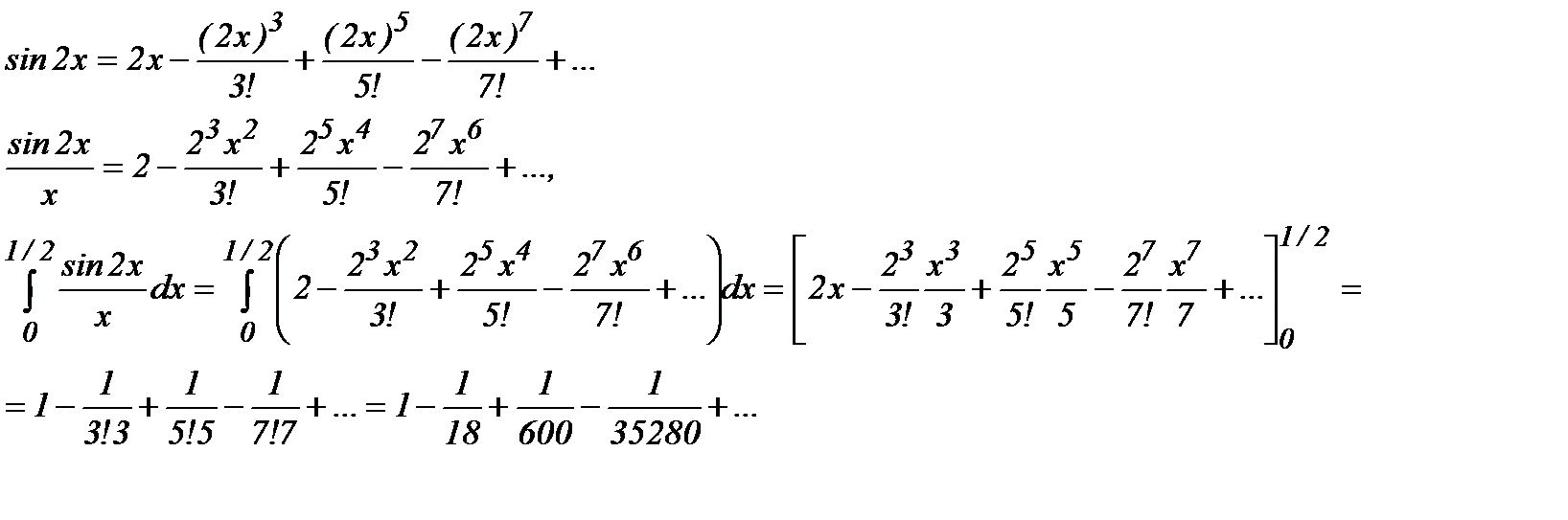Предварительно представим подынтегральную функцию в виде степенного ряда. Используя известное разложение в степенной ряд функции sin x, имеем: