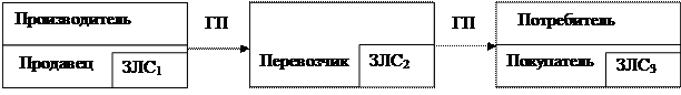 Ориентированная по материальному потоку логистическая цепь включает в себя форму производителя (продавца) готовой продукции (одного наименования), потребителя (покупателя) и логистического посредника, в качестве которого выступает перевозчик – юридическое или физическое лицо, осуществляющее доставку товара покупателю (рисунок. 1.1).