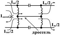 По половинам катушек дросселя проходят равные тяговые токи, создающие равные встречно-направленные и уничтожающие друг друга магнитные потоки. Тяговому току дроссель не оказывает индуктивного сопротивления. А для тока автоблокировки частотой 75 герц дроссель оказывает большое индуктивное сопротивление и практически через дроссель ток автоблокировки не проходит.
