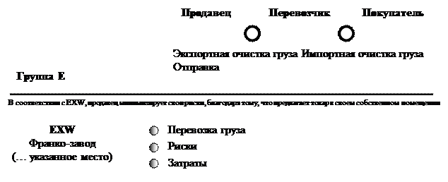 Для нормативного распределения рисков ВЭО между продавцами и покупателями, возникающих при передаче товара от одного к другому сторонами междугородных договоров купли-продажи, целесообразно пользоваться правилами “Инкотермс–2000” согласно которым все транспортные риски классифицируется по четырем группам E, F, C и D.