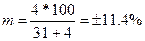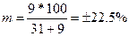 Пример. В клинике проведено испытание нового лечебного препарата. Показатель эффективности – 100%, n = 31. При t = 2 ошибка показателя равна: