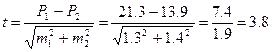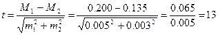 – при определении разности средних величин М1 и М2.