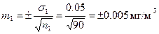 M1 = 0,200 мг/м3 σ1 = ±0,05 мг/м3 n1 = 90