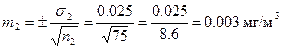 n2 = 75, M2 = 0,135 мг/м3 σ2 = ±0,025 мг/м3