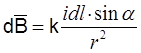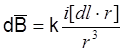 dB – магнитная индукция, создаваемая элементом dl проводника с током i;