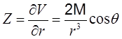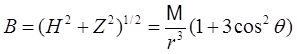 Пусть точка Р находится на поверхности сферической Земли, в центре которой помещён диполь.В этом случае относительно поверхности Земли горизонтальная и вертикальная составляющие поля Н и Z в точке Р находятся следующим образом: