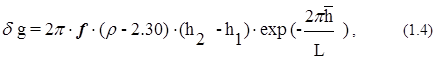 ед. СГС, h1,2 - глубины залегания верхней и нижней поверхностей пластов, L = 100 км – условная горизонтальная мощность пласта.