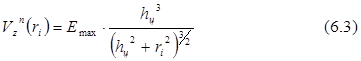 Вычислить значения вертикальной составляющей потенциала притяжения Vzn при тех же условиях, что и в п.1, но по заданному значению амплитуды Vzn в эпицентре Vzn (0) = 1.5 Vz (0) = Emax: