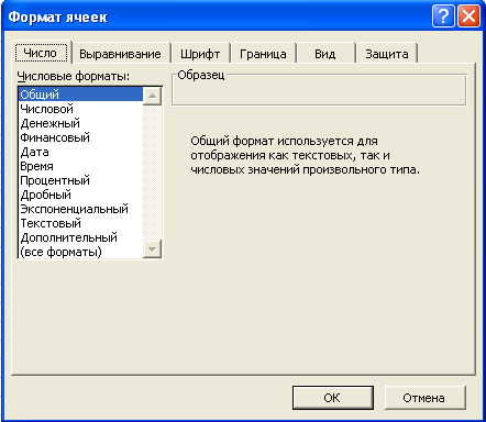 Вводя данные в ячейку, мы можем задать их формат. Для этого необходимо в меню Формат нажать Формат Ячейки и из списка выбрать нужный.
