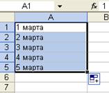 Вводить текстовые данные, которые являются списками, можно с помощью автозаполнения. Например, если строка или столбец должны содержать последовательно дни недели или числа месяца, то достаточно ввести одно число или один день недели. А все последующие дни появятся при копировании. Для этого нужно поместить курсор в правый нижний угол ячейки так, чтобы появился черный крестик, нажать и протянуть.