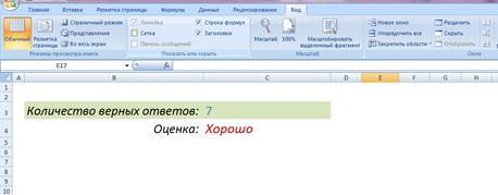 11. Уберите линии сетки, текст с проверкой по каждому вопросу сделайте белым или скройте ячейки. Выделите цветом и заливкой результаты: