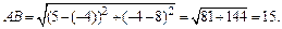 Решение: 1. Подставив в формулу (1) координаты точек А и В, имеем:
