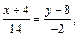 2. Подставив координаты точек А и В в формулу (2), получим уравнение прямой АВ: